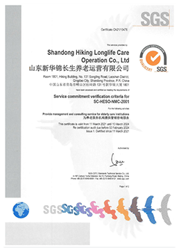 公司取得了長江北第一家養(yǎng)老服務(wù)質(zhì)量標(biāo)準(zhǔn)和管理標(biāo)準(zhǔn)雙體系認(rèn)證
